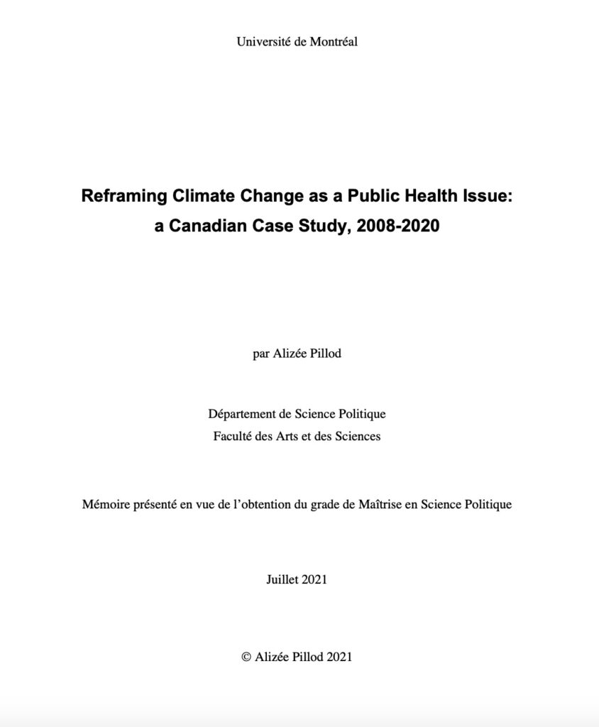 Pillod, A. (2021). Reframing Climate Change as a Public Health Issue: a Canadian Case Study, 2008-2020 [Master’s thesis, Université de Montréal]. Papyrus.